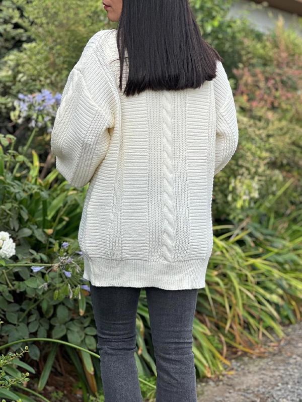 Imponera med vår kvinnors V-ringade långärmade stickade kofta: