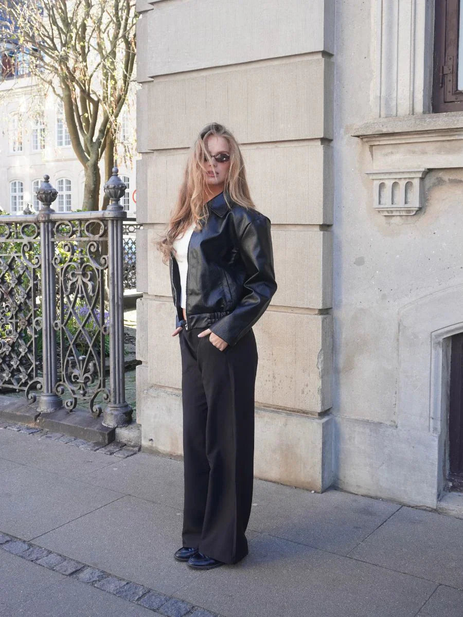 Jackan har sidfickor, dragkedja fram och krage vid halsen, vilket ger den en mer exklusiv look. Med sin naturliga oversized-passform är den lätt att styla med allt från en stickad tröja till en enkel t-shirt. En jacka du kan bära om och om igen, oavsett säsong!