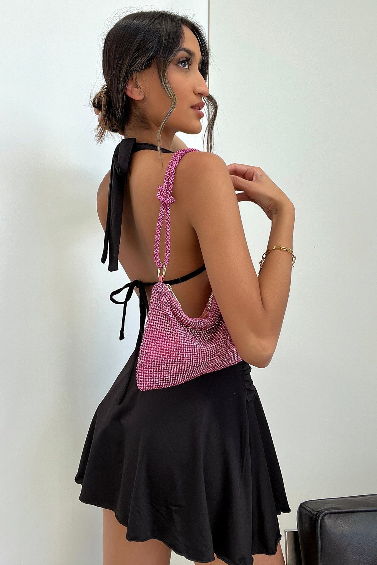 Gör ett statement med Talia Diamond Bag! Denna eleganta väska har en praktisk innerficka och en kort axelrem, vilket gör den perfekt för en kväll på stan. Med sina funky diamanter är den den idealiska accessoaren för att para ihop med din favorit svarta miniklänning och klackar för den ultimata heta tjejlook!