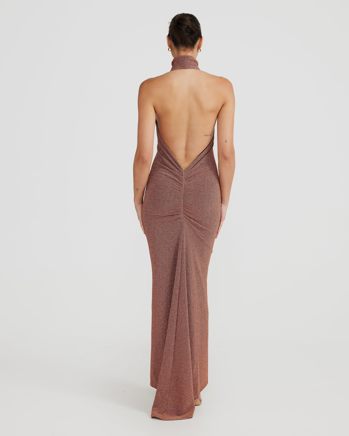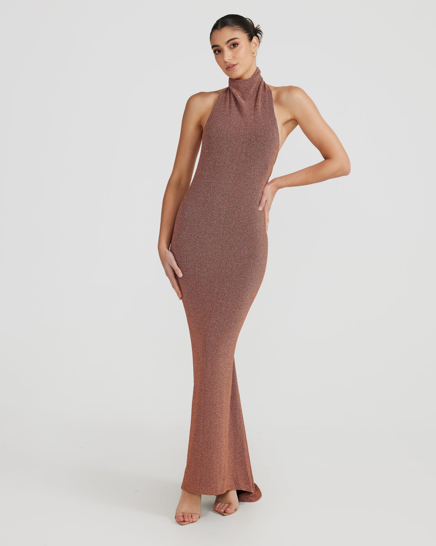 Höj din elegans med Roxy Foil Klänning! Detta fantastiska plagg är designat för att få dig att sticka ut vid varje speciellt tillfälle. Med sin sofistikerade hög halsringning och förförande låg rygg, balanserar det perfekt klassisk charm med modern dragningskraft.